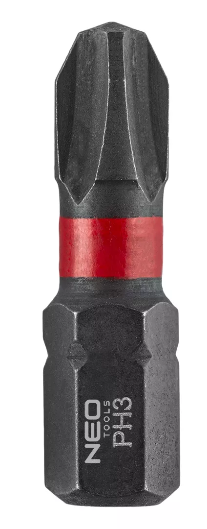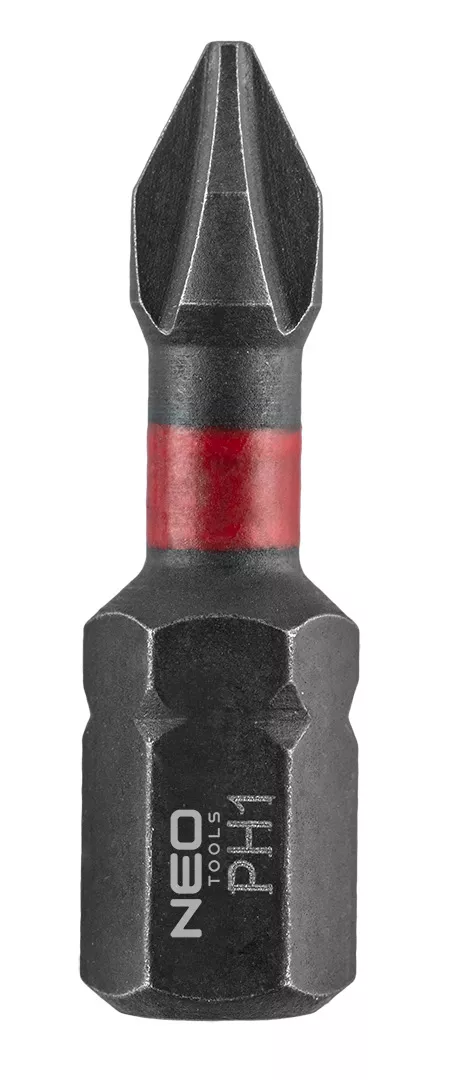 Bity udarowe PH1/2/3, PZ1/2/3 x 25 mm, 6 sztuk 56-540 marki NEO TOOLS to bity udarowe PH1, PH2, PH3, PZ1, PZ2, PZ3, o długości 25 mm. Wykonane ze stali S2, są odpowiednio przystosowane do pracy udarowej. Posiadają chwyt 1/4" HEX. Sprawdzą się w zadaniach profesjonalistów oraz majsterkowiczów. Dostarczane w zestawie 6 sztuk.