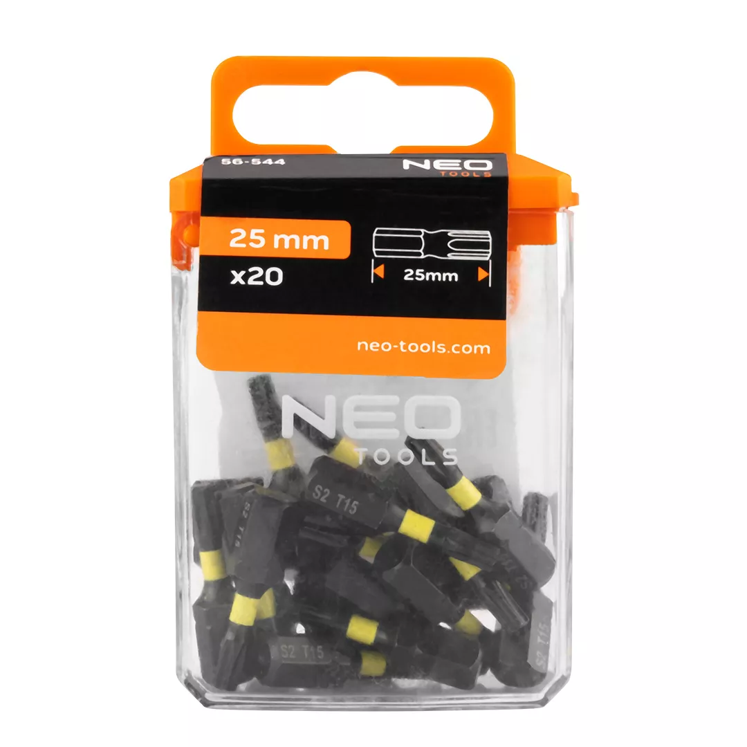 Bity udarowe, 20 sztuk, TX15, długość 25 mm, stal S2, uchwyt 1/4" HEX