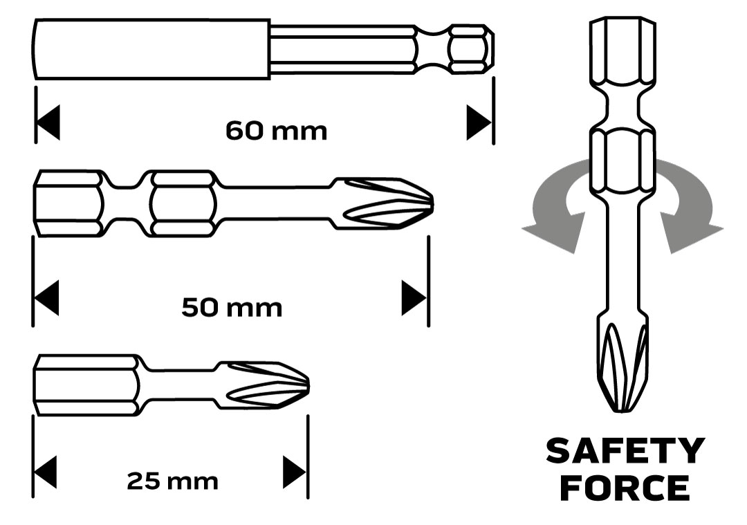 Zestaw bitów, 23 sztuki 56-612 marki NEO TOOLS wykonano ze stali S2 i skompletowano pod najczęstsze zastosowania montażowe. W skład zestawu wchodzą bity 25 mm: PH/PZ/ HEX/ TX, oraz bity 50 mm: PH/ PZ/ TX. Zestaw NEO TOOLS uzupełniony został o przedłużkę 1/4" HEX o długości 60 mm. Konfiguracja elementów umożliwia szybką zmianę osprzętu oraz pracę w zakrętarkach/wkrętarkach udarowych z osprzętem w standardach PH, PZ, TX i HEX.