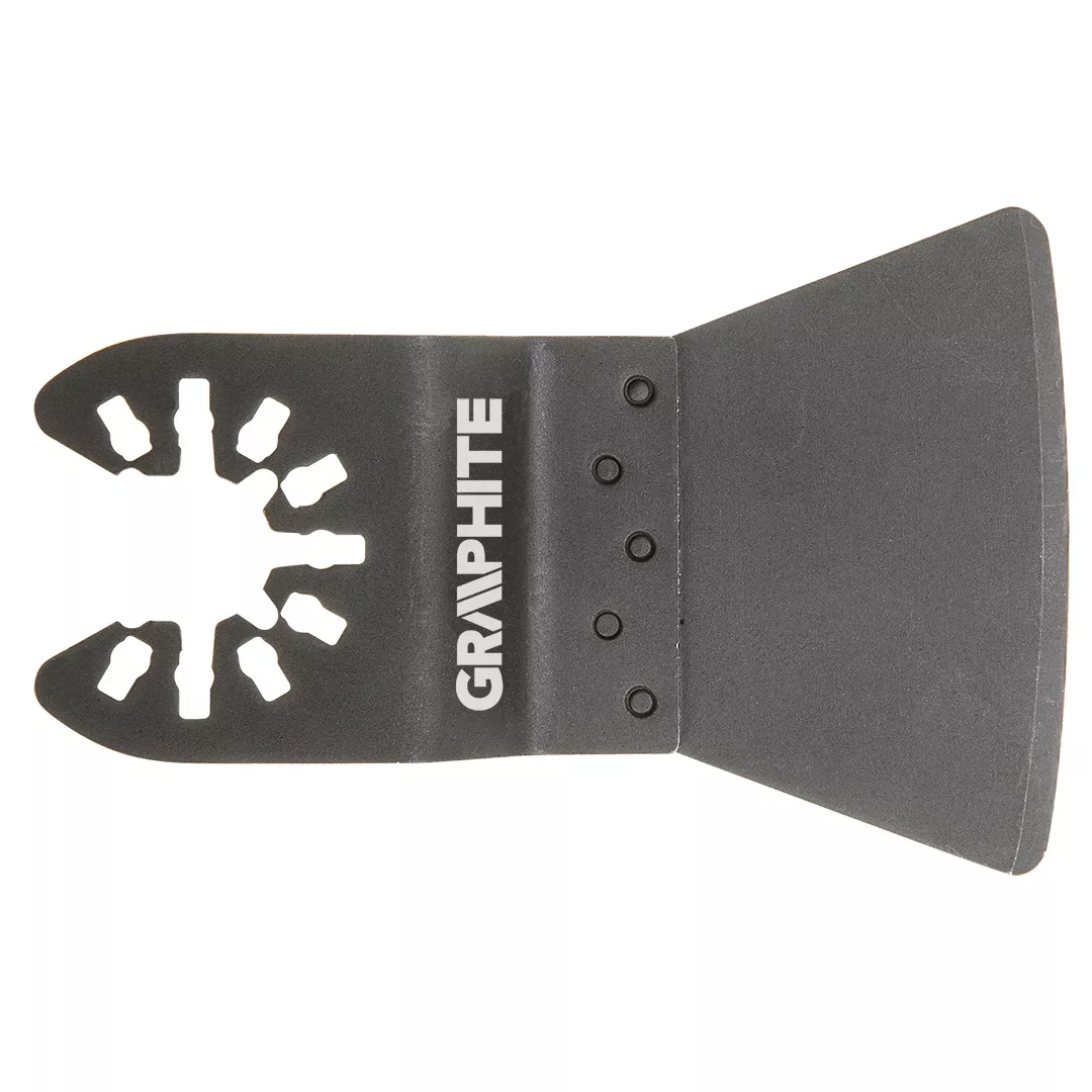 Skrobak GRAPHITE (nr ref. 56H010) o szerokości 50 mm, wykonany z hartowanej stali węglowej. Pozwala na usuwanie powłok lakierniczych, małych fragmentów tapet, oczyszczanie powierzchni drewnianych i metalowych z resztek farb i klejów przy pomocy multinarzędzia GRAPHITE.