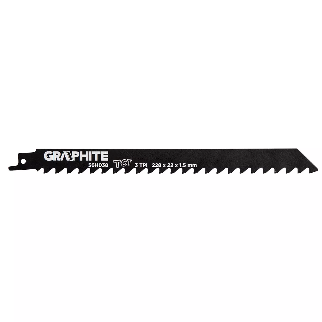 Brzeszczot do piły szablastej GRAPHITE o długości 228 mm oraz 3 zębami na cal długości przeznaczone do cięcia m.in. płyt włókno-cementowych, betonu komórkowego, czerwonej cegły, szkła, tworzysz sztucznych wzmacnianych włóknami szklanymi, żywicy epoksydowej, materiałów ściernych przy użyciu pił szablastych. Maksymalna grubość materiałów to 175 mm. Znajduje zastosowanie przy pracach remontowych, budowlanych, rozbiórkowych oraz w przydomowych pracach amatorskich. Umożliwia cięcie prostolinijne. Brzeszczot powoduje niższe zapylenie podczas cięcia w porównaniu do tradycyjnych metod. Umożliwia cięcie blisko krawędzi oraz w miejscach trudno dostępnych.