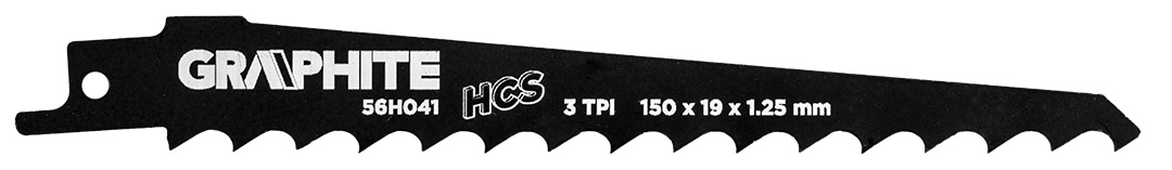Brzeszczot do piły szablastej GRAPHITE o długości 150 mm oraz 3 zębami na cal długości przeznaczone do cięcia m.in. drewna grubego, przycinania gałęzi i krzewów przy użyciu pił szablastych. Maksymalna grubość materiałów to 100 mm. Znajduje zastosowanie przy pracach remontowych, budowlanych, rozbiórkowych oraz w przydomowych pracach amatorskich. Umożliwia cięcie prostolinijne. Brzeszczot powoduje niższe zapylenie podczas cięcia w porównaniu do tradycyjnych metod. Umożliwia cięcie blisko krawędzi oraz w miejscach trudno dostępnych.