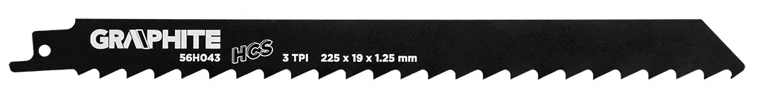 Brzeszczot do piły szablastej GRAPHITE o długości 225 mm oraz 3 zębami na cal długości przeznaczone do cięcia drewna grubego oraz opałowego przy użyciu pił szablastych. Maksymalna grubość materiałów to 175 mm. Znajduje zastosowanie przy pracach remontowych, budowlanych, rozbiórkowych oraz w przydomowych pracach amatorskich. Umożliwia szybkie i precyzyjne cięcie prostolinijne i zakrzywione/wgłębne.