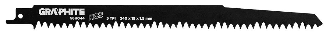 Brzeszczot do piły szablastej GRAPHITE o długości 240 mm oraz 5 zębami na cal długości przeznaczone do cięcia zgrubnego i szybkiego cięcia w drewnie (ścinanie i przycinanie drzew) przy użyciu pił szablastych. Maksymalna grubość materiałów to 190 mm. Umożliwia szybkie i precyzyjne cięcie prostolinijne i zakrzywione/wgłębne.