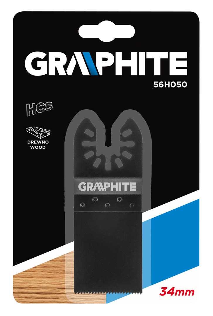 Brzeszczot płaski GRAPHITE (nr ref. 56H050) o szerokości 34 mm, wykonany z hartowanej stali węglowej. Pozwala na precyzyjne cięcie elementów drewnianych w trudno dostępnych miejscach przy pomocy multinarzędzia GRAPHITE.