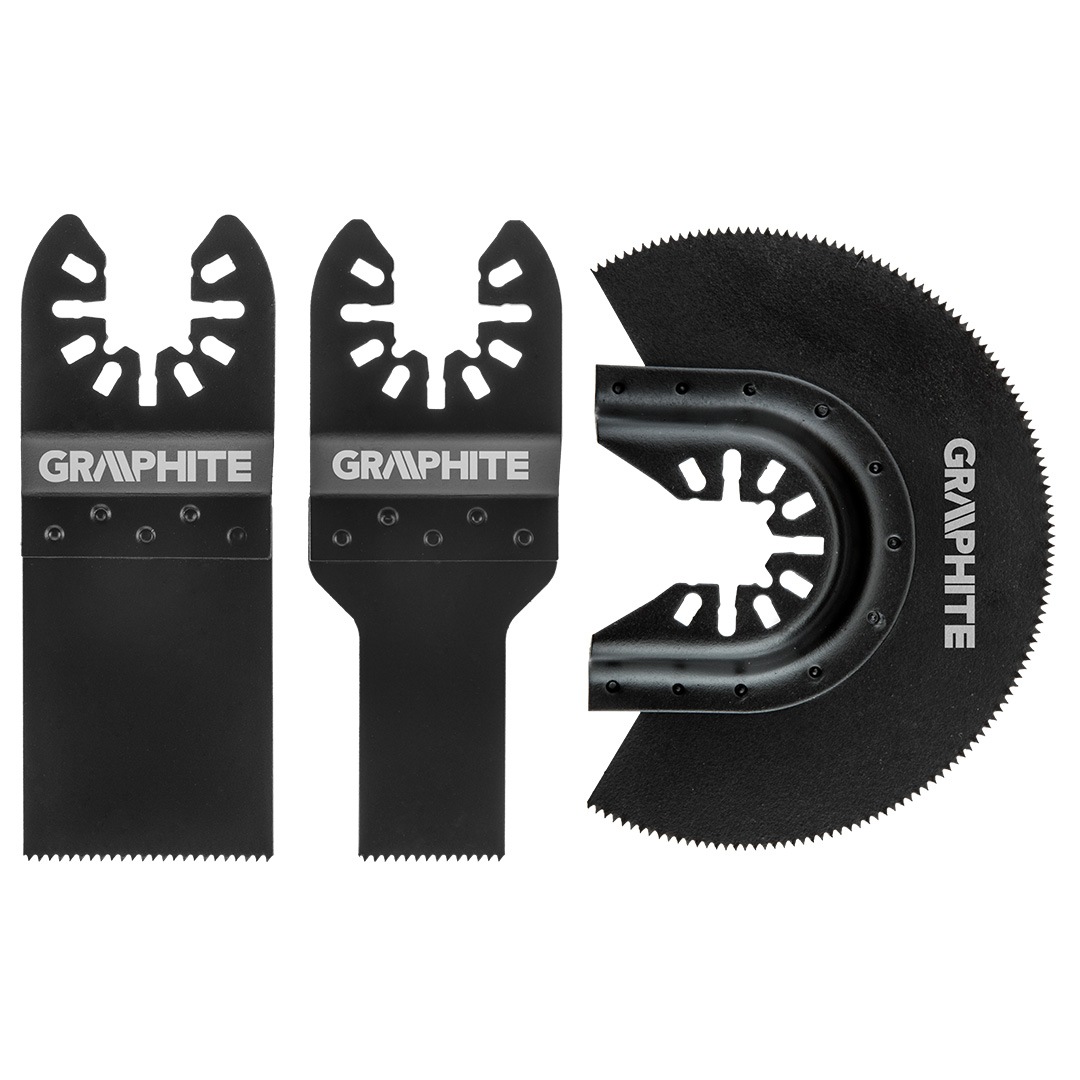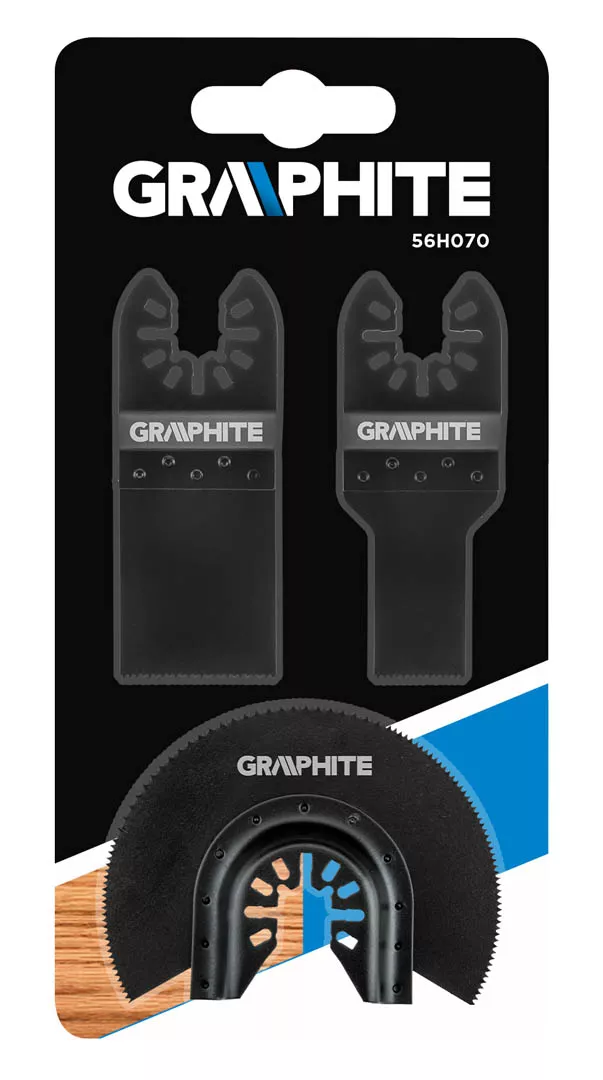 Zestaw brzeszczotów do drewna GRAPHITE (nr ref. 56H070), 3 szt. Pozwala na precyzyjne cięcie elementów drewnianych w trudno dostępnych miejscach przy pomocy multinarzędzia GRAPHITE.