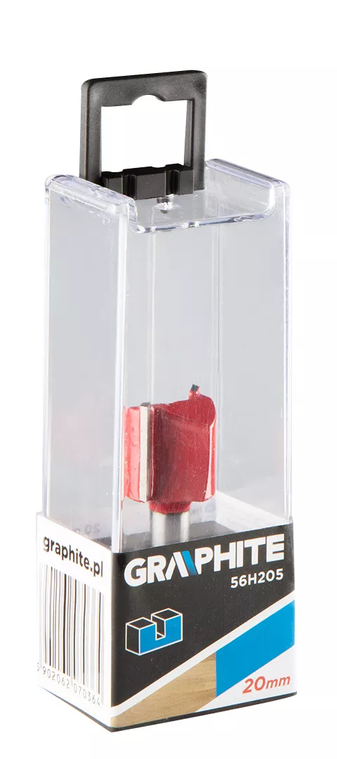 Frez palcowy dwuostrzowy, HM, 19 x 20 mm, trzpień 8 mm GRAPHITE (nr ref. 56H205) przeznaczony do precyzyjnej obróbki m.in. drewna, PCV, płyt wiórowych przy pomocy frezarek górnowrzecionowych. Głowica wyposażona została w płytki skrawające wykonane z węglika spiekanego pozwalające uzyskać idealne wykończenie powierzchni. Wymiary części roboczej: średnica 19 mm, wysokość 20 mm; średnica trzpienia 8 mm.