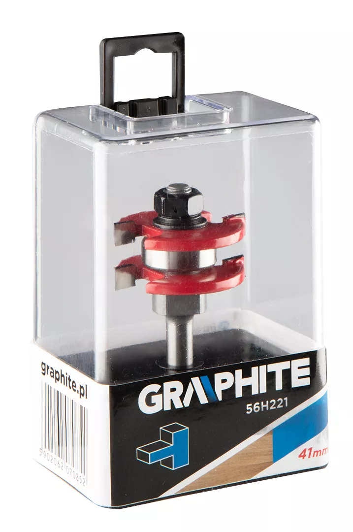 Frez do wypustów, HM, 41 x 6.35 mm, trzpień 8 mm GRAPHITE (nr ref. 56H221) przeznaczony do precyzyjnej obróbki m.in. drewna, PCV, płyt wiórowych przy pomocy frezarek górnowrzecionowych. Głowica wyposażona została w płytki skrawające wykonane z węglika spiekanego. Frez wyposażony został w łożysko, które ułatwia prowadzenie frezarki. Wymiary części roboczej: średnica 41 mm, wysokość 6.35 mm; średnica trzpienia 8 mm.