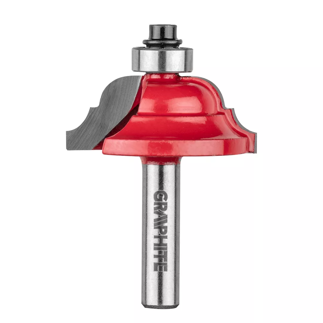 Frez kształtowy z łożyskiem, ozdobny, HM, 39.3 x 15.9 mm, trzpień 8 mm GRAPHITE (nr ref. 56H231) przeznaczony do precyzyjnej obróbki m.in. drewna, PCV, płyt wiórowych przy pomocy frezarek górnowrzecionowych. Głowica wyposażona została w płytki skrawające wykonane z węglika spiekanego. Frez wyposażony został w łożysko, które ułatwia prowadzenie frezarki. Wymiary części roboczej: średnica 39.3 mm, wysokość 15.9 mm; średnica trzpienia 8 mm.