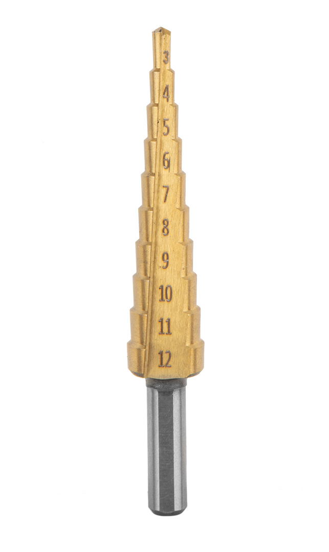 Wiertła stopniowe, rozwiertaki, frezowiertła, pogłębiacz, zestaw 7 szt.