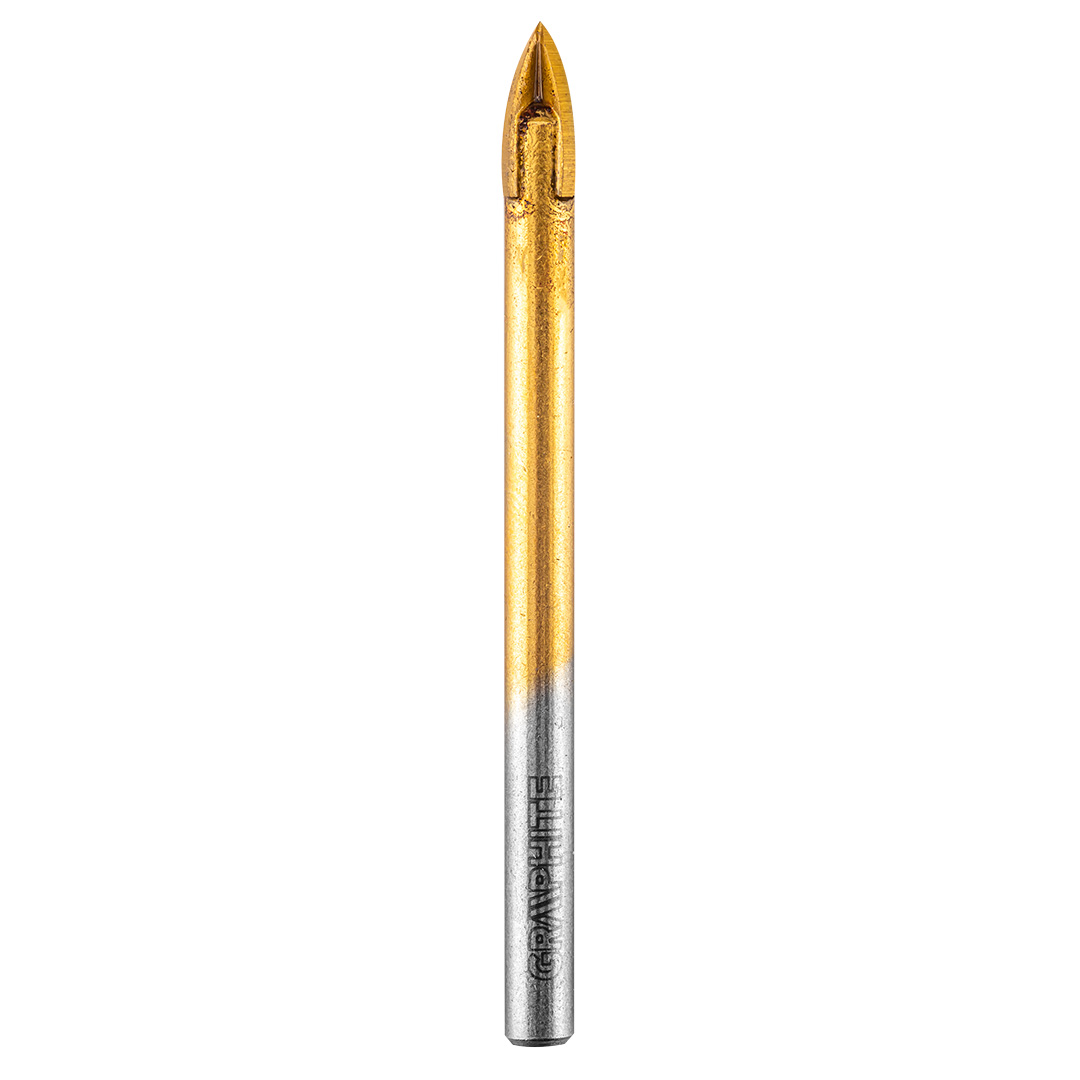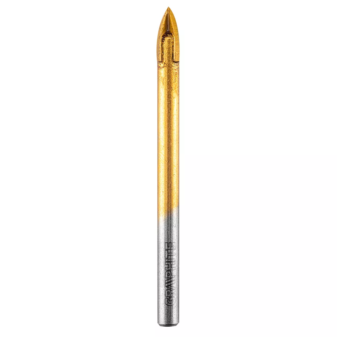 Wiertło uniwersalne HM GRAPHITE (nr ref. 56H403) o średnicy 6 mm i długości 64 mm to wielofunkcyjne wiertło przeznaczone do wiercenia bezudarowego w materiałach miękkich takich jak: drewno, tworzywa sztuczne, aluminium, cegła, ceramika, szkło. Wiertło posiada 4 ostrza oraz wykonane zostało z węglika spiekanego, pokrytego warstwą tytanu.