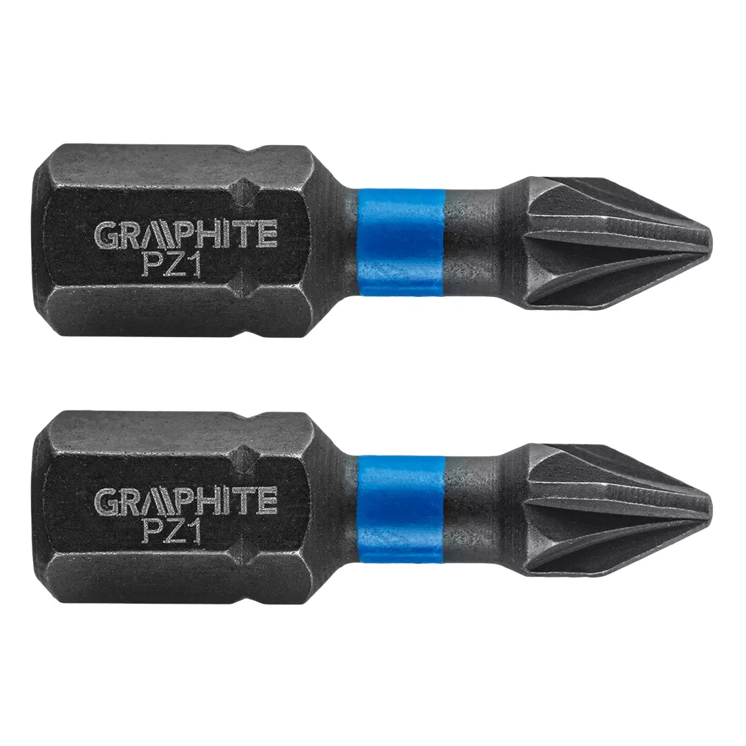 Bity udarowe GRAPHITE (nr ref. 56H503) typ PZ1, o długości całkowitej 25 mm, to wytrzymałe bity przeznaczone do cięższych prac z zastosowaniem wysokich momentów obrotowych przy użyciu wkrętarek bądź zakrętarek udarowych. Wykonane z wysokogatunkowej stali S2, która cechuje się zwiększoną elastycznością i wytrzymałością na uszkodzenia mechaniczne. Obracająca się pod wpływem wysokiego momentu obrotowego strefa skrętna zmniejsza przenoszenie siły, przez co bit jest bardziej odporny na złamanie, a jego żywotność jest wydłużona kilkukrotnie. Końcówka robocza grota gwarantuje idealne dopasowanie. Marka GRAPHITE oferuje szeroki asortyment elektronarzędzi spełniających wymagania profesjonalistów.
