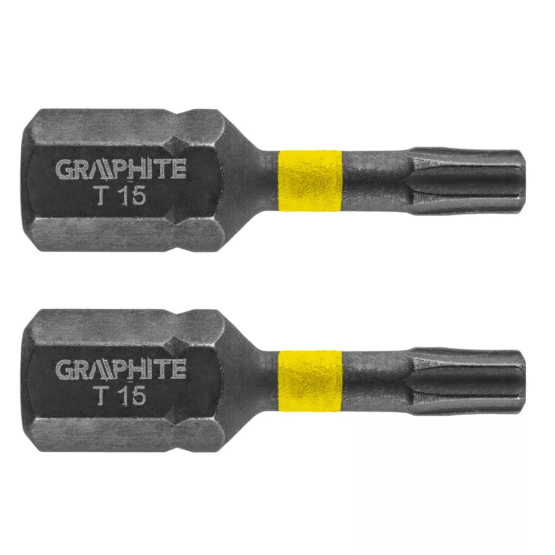 Bity udarowe GRAPHITE (nr ref. 56H512) typ TX15, o długości całkowitej 25 mm, to wytrzymałe bity przeznaczone do cięższych prac z zastosowaniem wysokich momentów obrotowych przy użyciu wkrętarek bądź zakrętarek udarowych. Wykonane z wysokogatunkowej stali S2, która cechuje się zwiększoną elastycznością i wytrzymałością na uszkodzenia mechaniczne. Obracająca się pod wpływem wysokiego momentu obrotowego strefa skrętna zmniejsza przenoszenie siły, przez co bit jest bardziej odporny na złamanie, a jego żywotność jest wydłużona kilkukrotnie. Końcówka robocza grota gwarantuje idealne dopasowanie. Marka GRAPHITE oferuje szeroki asortyment elektronarzędzi spełniających wymagania profesjonalistów.