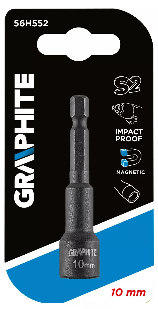 Nasadka udarowa GRAPHITE (nr ref. 56H652) o wymiarach 10 x 65 mm. Przeznaczona do cięższych prac z zastosowaniem wysokich momentów obrotowych przy użyciu wkrętarek bądź zakrętarek udarowych. Wykonana z wysokogatunkowej stali S2, która cechuje się zwiększoną elastycznością i wytrzymałością na uszkodzenia mechaniczne. Końcówka magnetyczna zabezpiecza przed wypadnięciem bita w trakcie wykonywanych prac. Marka GRAPHITE oferuje szeroki asortyment elektronarzędzi spełniających wymagania profesjonalistów.