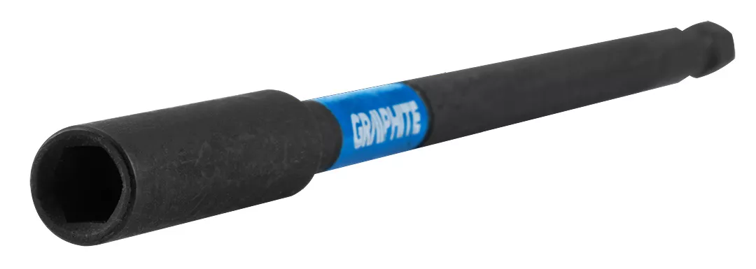 Przedłużka do bitów udarowych 150 mm 56H558 marki GRAPHITE o całkowitej długości 150 mm. Wykonana została z trwałej stali CrV. Charakteryzuje się napędem ¼” i posiada praktyczną magnetyczną końcówkę, która ułatwia montaż bitów. Końcówka kompatybilna jest z narzędziami udarowymi. Element marki GRAPHITE polecany dla profesjonalistów oraz majsterkowiczów.