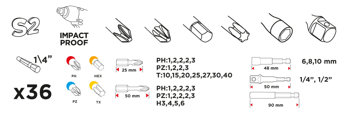 Zestaw bitów udarowych, 36 szt.