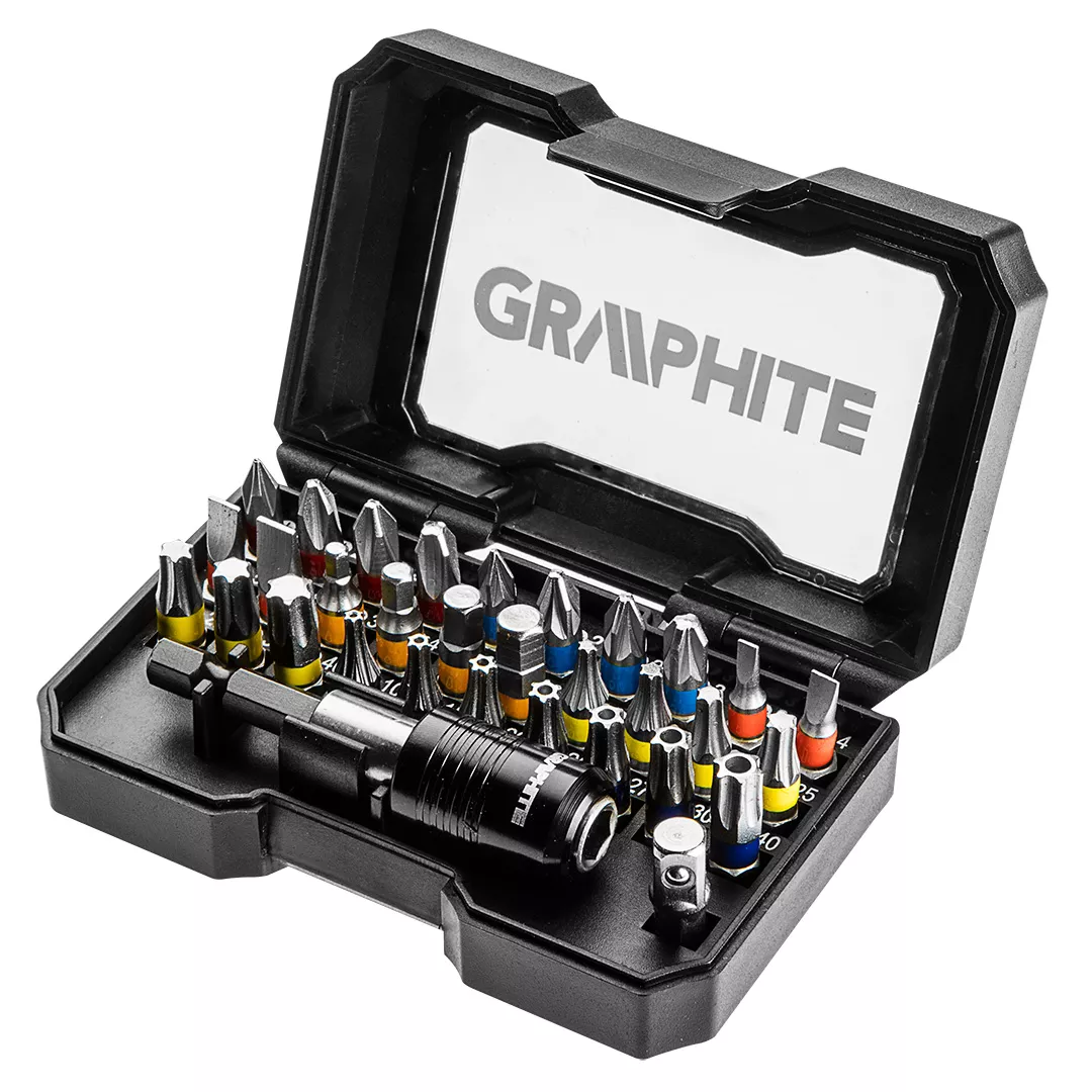 Zestaw najpopularniejszy końcówek GRAPHITE (nr ref. 56H608), w bardzo wygodnym, kompaktowym opakowaniu. Idealny do wszelkich prac montażowych.