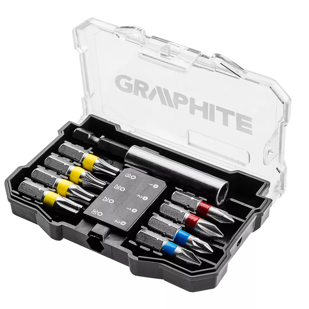 Zestaw podstawowych końcówek GRAPHITE (nr ref. 56H614) z opakowaniem w formie uchwytu do pokręcania.