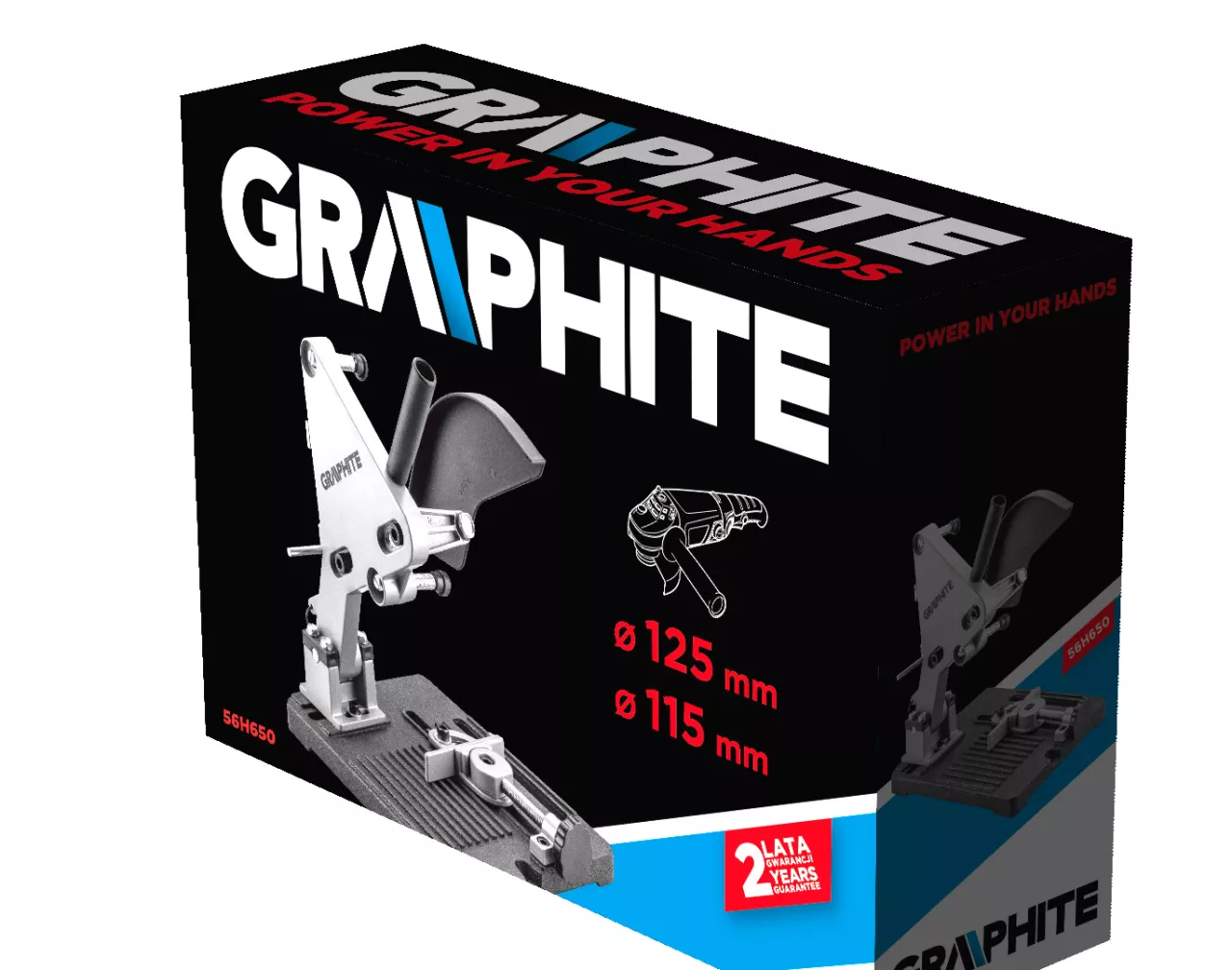 Statyw do szlifierek kątowych GRAPHITE (nr ref. 56H650) przeznaczony do precyzyjnego cięcia elementów metalowych. Idealny do współpracy ze szlifierkami o średnicy tarczy 115 i 125 mm. Bardzo wytrzymała, odlewana ciśnieniowo podstawa statywu wyposażona jest w otwory, dzięki którym w bardzo prosty sposób można zamontować go do blatu roboczego. Statyw wyposażony jest w obrotowe imadło, którym regulowany jest zakres cięcia od 0° do 45˚. Łatwość obsługi statywu pozwala każdemu majsterkowiczowi lub rzemieślnikowi na wykonanie dokładnego cięcia prostopadłego jak i skośnego. Dodatkowa osłona zabezpiecza użytkownika przed snopem iskier. Wykorzystywanie do pracy statywu zwiększa bezpieczeństwo operatora, a stacjonarny sposób użytkowania przyczynia się do osiągnięcia lepszych efektów pracy szlifierki. Marka GRAPHITE oferuje szeroki asortyment elektronarzędzi spełniających wymagania profesjonalistów.
