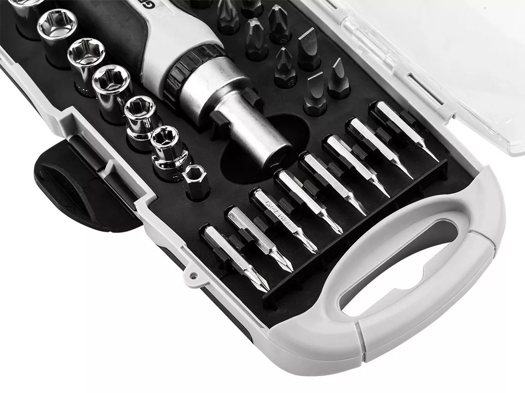 Zestaw bitów i bitów precyzyjnych z uchwytem magnetycznym z grzechotką 115 mm, 30 szt.