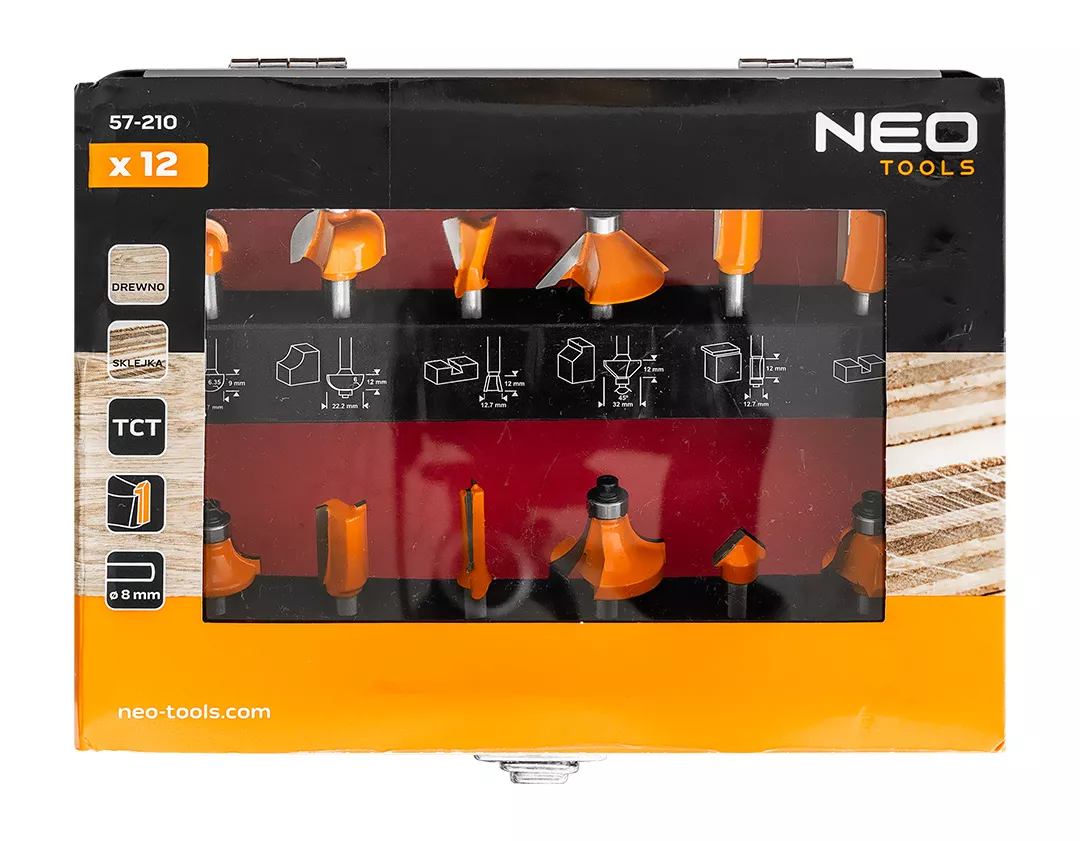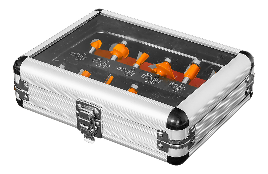 Frezy widiowe, trzpień 8 mm, zestaw 12 szt., plastikowa kasetka do przechowywania