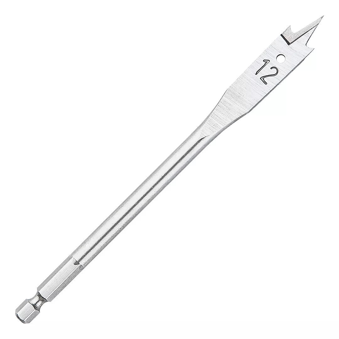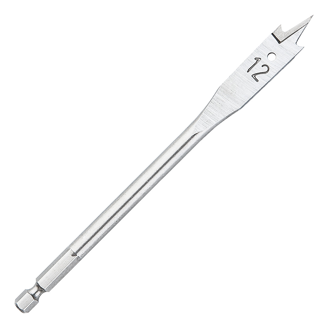 Wiertło do drewna łopatkowe, średnica 12 mm, długość całkowita 152 mm, hartowane ostrze, uchwyt sześciokątny typu "quick change"