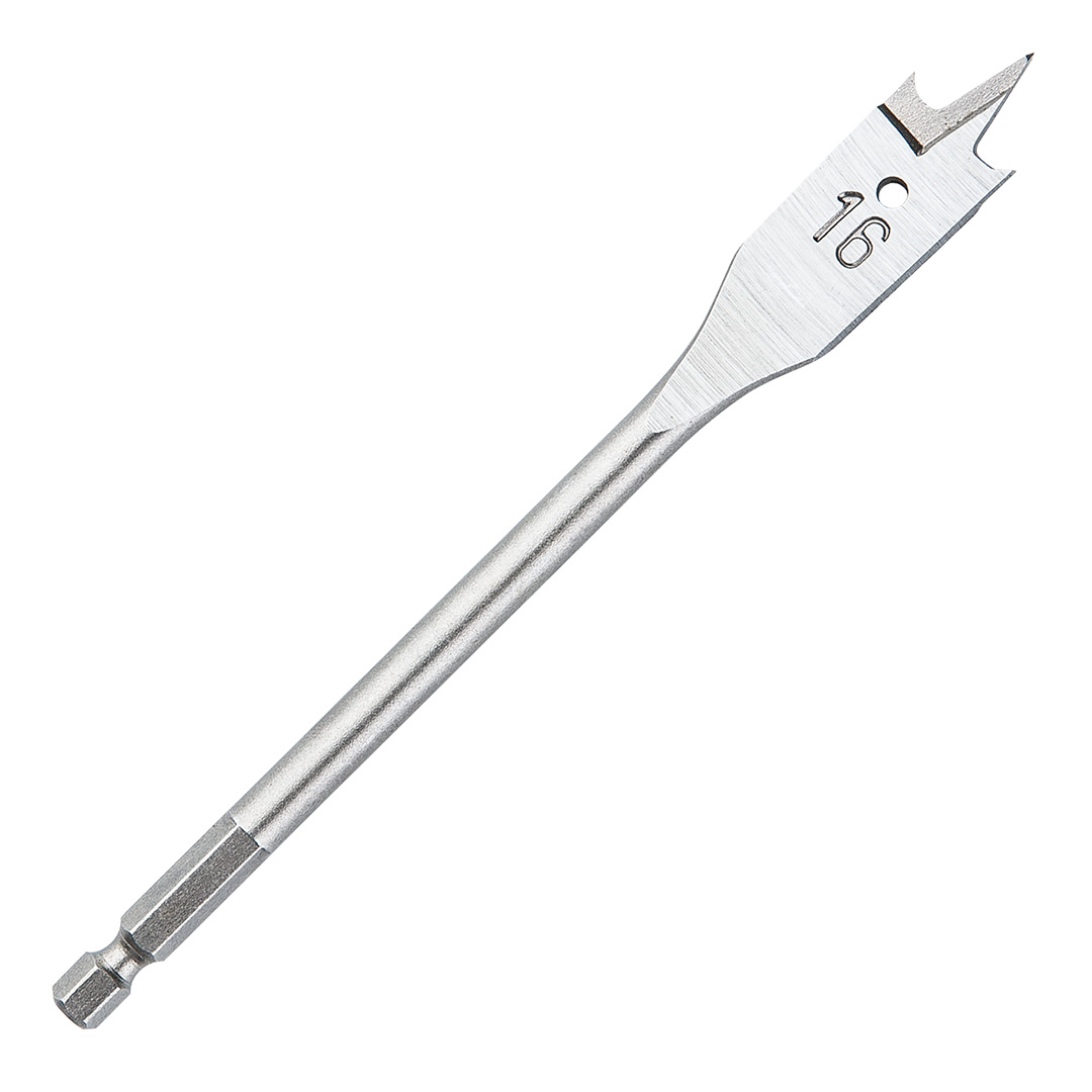 Wiertło do drewna łopatkowe, średnica 16 mm, długość całkowita 152 mm, hartowane ostrze, uchwyt sześciokątny typu "quick change"