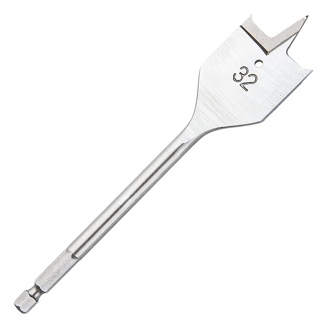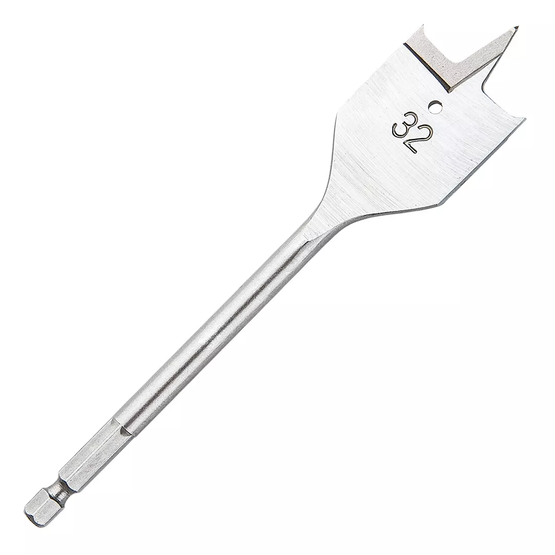 Wiertło do drewna łopatkowe, średnica 32 mm, długość całkowita 152 mm, hartowane ostrze, uchwyt sześciokątny typu "quick change"