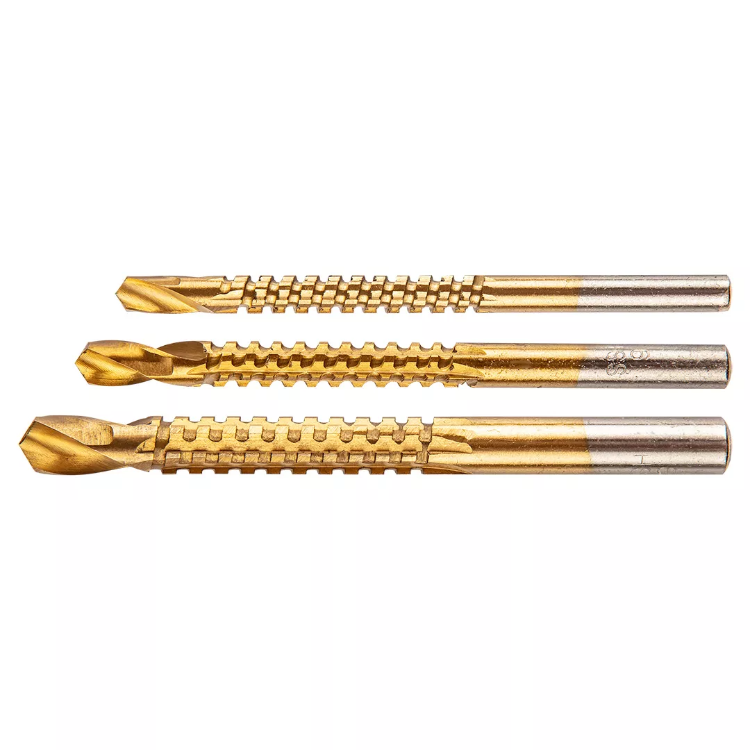 Wiertła-piły HSS-TiN, zestaw 3 szt., 5, 6, 8 mm, zastosowanie: do drewna, sklejki, materiałów sztucznych, materiał wykonania: HSS-TiN