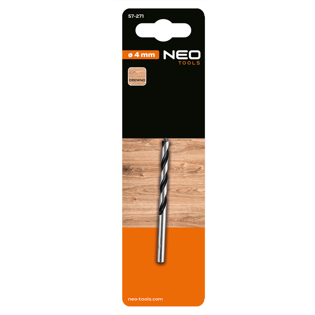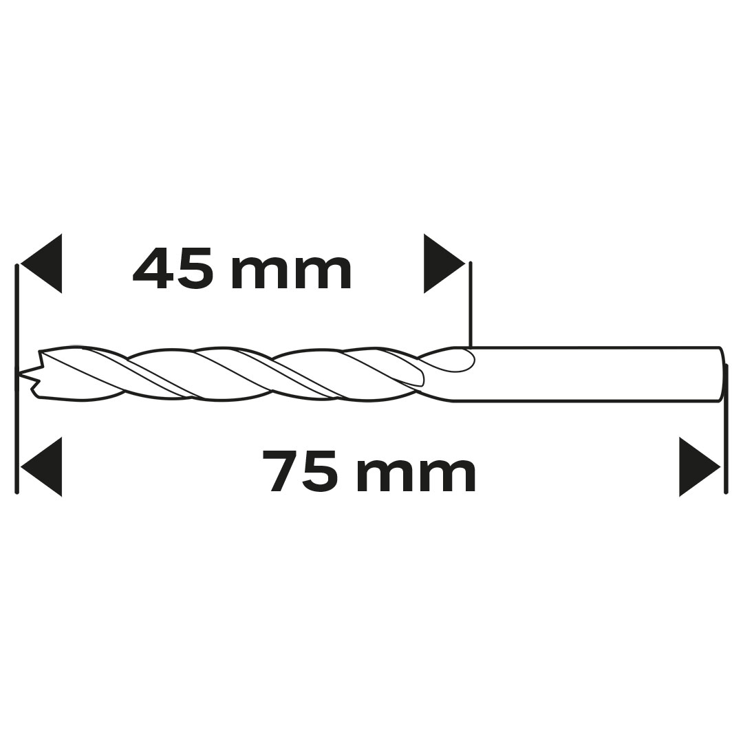 Wiertło do drewna spiralne, średnica 4 mm, długość całkowita 75 mm, długość robocza 45 mm, chwyt cylindryczny