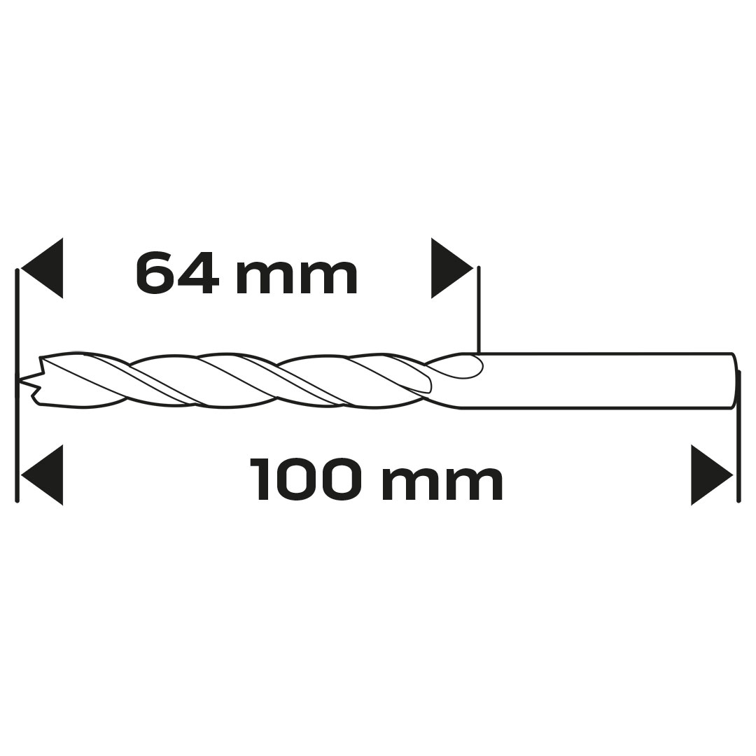 Wiertło do drewna spiralne, średnica 7 mm, długość całkowita 100 mm, długość robocza 64 mm, chwyt cylindryczny