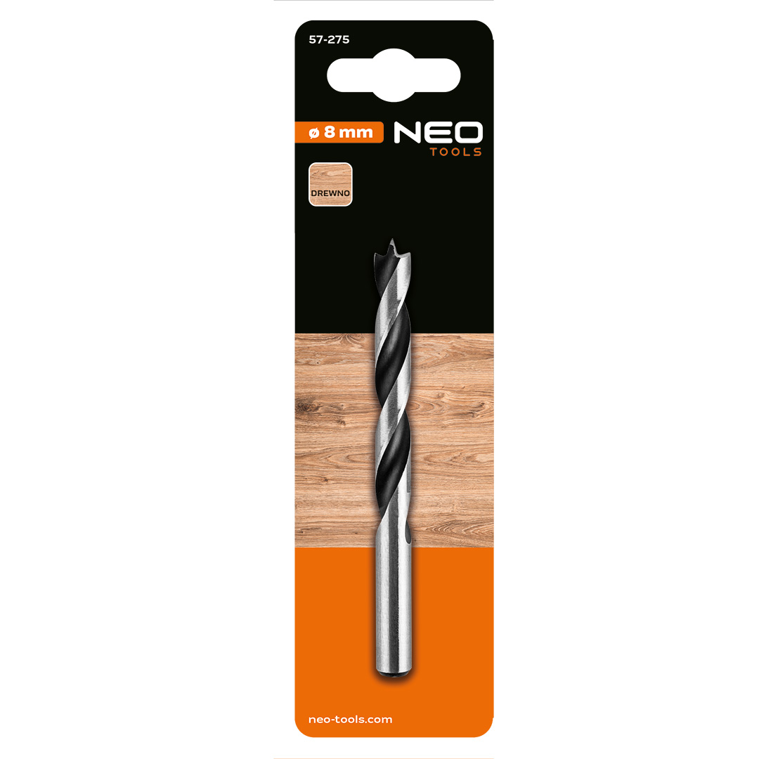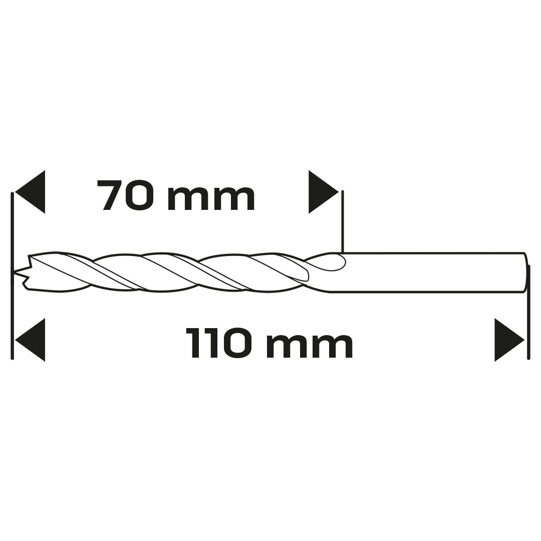 Wiertło do drewna spiralne, średnica 8 mm, długość całkowita 110 mm, długość robocza 70 mm, chwyt cylindryczny