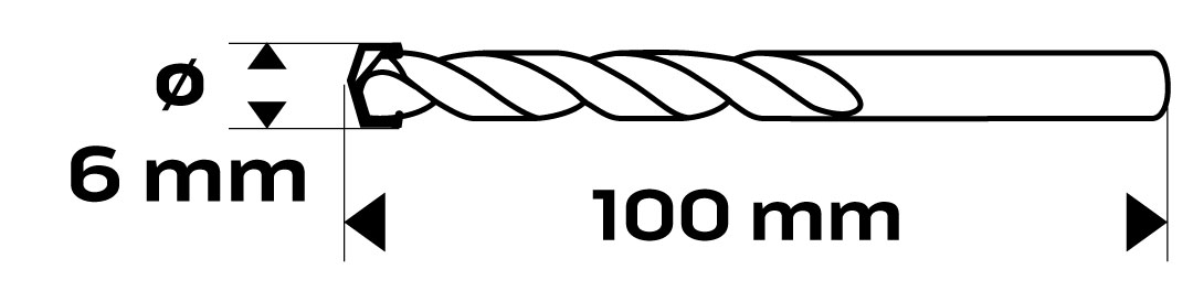 Wiertło do betonu 6 x 100 mm, końcówka motylkowa