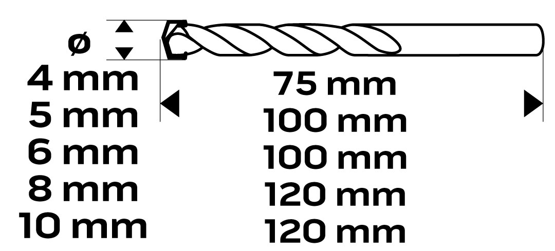 Wiertła do betonu 4-10 mm, zestaw 5 szt., końcówka motylkowa 57-350 NEO TOOLS to 5 najpopularniejszych średnic (4, 5, 6, 8, 10 mm) z końcówką motylkową z węglika spiekanego. Komplet zapewnia stabilny start wiercenia, kompatybilność ze standardowymi uchwytami oraz gotowość do pracy udarowej w betonie, cegle, murze i kamieniu. Wiertła charakteryzują się długościami roboczymi: 4: 40mm, 5: 40 mm, 6: 60 mm, 8:, 80 mm, 10: 80 mm, oraz długościami całkowitymi: 4: 75mm, 5: 100 mm, 6: 100 mm, 8:, 120 mm, 120: 80 mm.