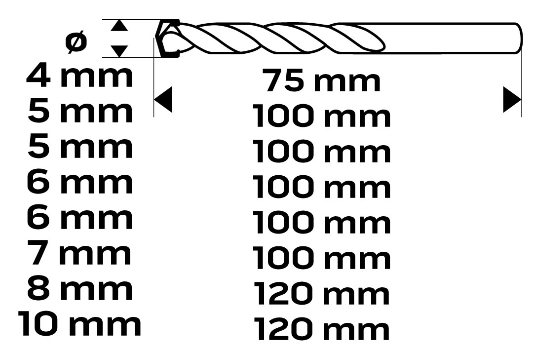 Zestaw wierteł do betonu zestaw 8 szt. - 4, 5, 5, 6, 6, 7, 8, 10 mm
