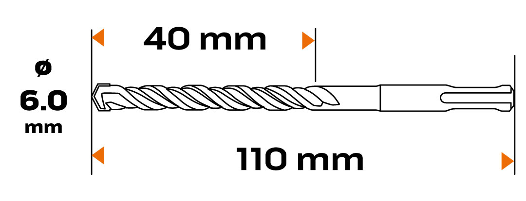 Wiertło do betonu SDS Plus, 6 x 110 mm, S4, quatro 57-406 marki NEO TOOLS to wiertło z końcówką krzyżową, wykonaną z drobnoziarnistego węglika spiekanego. Podwójna spirala S4 zapewnia mu właściwe odprowadzanie urobku i ogranicza ryzyko przegrzewania. Długość robocza wiertła wynosi 50 mm, a jego długość całkowita to 110 mm. Akcesorium posiada chwyt SDS Plus. Jego przeznaczenie to beton, cegła, mur, kamień. Wiertło NEO TOOLS polecane jest do pracy z młotowiertarkami i młotami udarowymi.