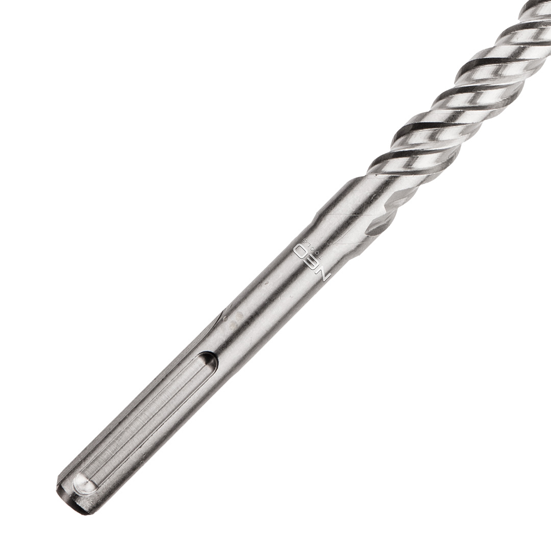 Wiertło do betonu SDS Max, 24 x 1000 mm, S4, quatro 57-528 marki NEO TOOLS charakteryzuje się krzyżową końcówką (quatro) z drobnoziarnistego węglika spiekanego, sprzyjającą wydajnemu wierceniu w betonie. Podwójna spirala typu S4 skutecznie odprowadza urobek, ograniczając ryzyko przegrzewania narzędzia podczas pracy. Długość robocza wiertła NEO TOOLS wynosi 860 mm, a całkowita 1000 mm. Przeznaczenie to beton, cegła, mur oraz kamień. Zalecana współpraca z młotami udarowymi wyposażonymi w chwyt SDS Max.