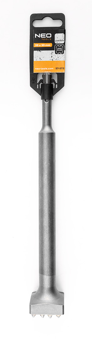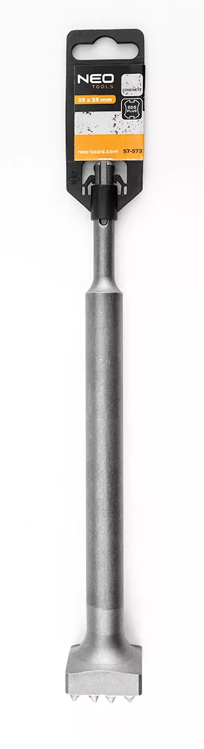 Groszkownik SDS Plus 35 x 35 mm, 16 zębów 57-573 marki NEO TOOLS to narzędzie o konstrukcji jednoczęściowej, przeznaczone do pracy w betonie. Część robocza 35 x 35 mm wyposażona w 16 zębów zapewnia równomierne groszkowanie powierzchni i uzyskanie wymaganej chropowatości pod dalsze warstwy. Długość całkowita 250 mm ułatwia stabilne prowadzenie narzędzia, a mocowanie w systemie SDS Plus gwarantuje pewne osadzenie w młotach udarowo-obrotowych.