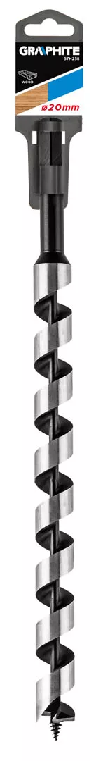 Wiertło spiralne do drewna GRAPHITE (nr ref. 57H258) o średnicy 20 mm dzięki specjalnemu profilowi ostrza oraz gwintowanemu kolcowi prowadzącemu pozwala precyzyjnie i wydajnie wiercić otwory w drewnie. Sześciokątny uchwyt zabezpiecza wiertło przed niekontrolowanym obracaniem się w uchwycie wiertarskim.
