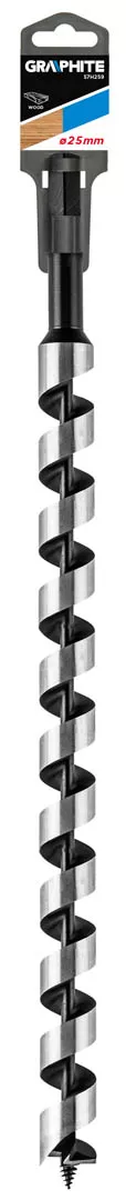 Wiertło spiralne do drewna GRAPHITE (nr ref. 57H259) o średnicy 25 mm dzięki specjalnemu profilowi ostrza oraz gwintowanemu kolcowi prowadzącemu pozwala precyzyjnie i wydajnie wiercić otwory w drewnie. Sześciokątny uchwyt zabezpiecza wiertło przed niekontrolowanym obracaniem się w uchwycie wiertarskim.