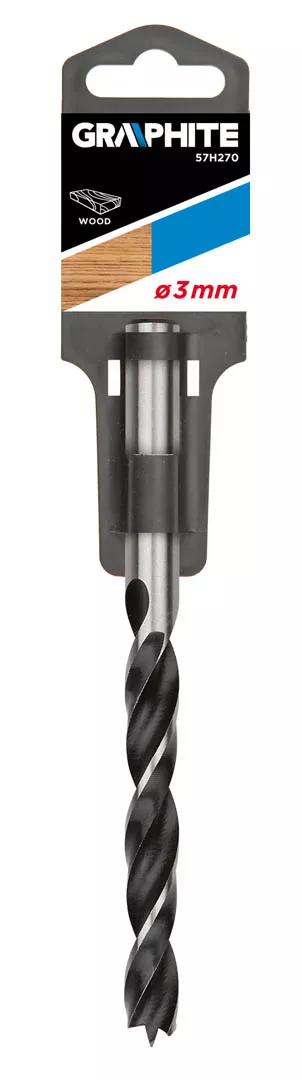 Wiertło spiralne do drewna GRAPHITE (nr ref. 57H270) o średnicy 3.0 mm dzięki specjalnemu profilowi ostrza z kolcem prowadzącym pozwala precyzyjnie i wydajnie wiercić otwory w drewnie.