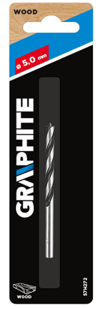 Wiertło spiralne do drewna GRAPHITE (nr ref. 57H272) o średnicy 5.0 mm dzięki specjalnemu profilowi ostrza z kolcem prowadzącym pozwala precyzyjnie i wydajnie wiercić otwory w drewnie.