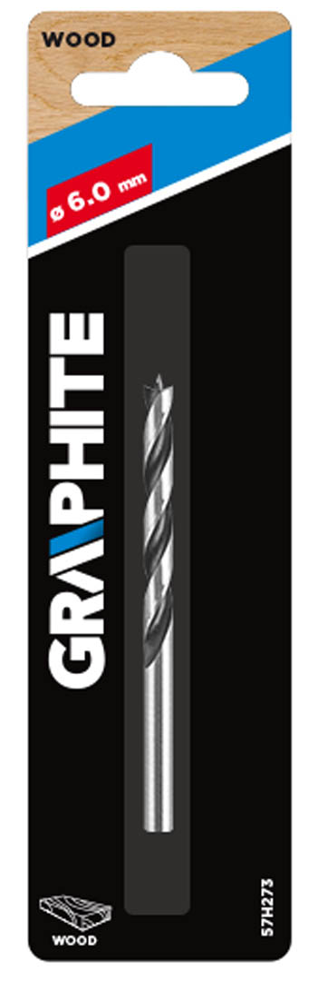 Wiertło spiralne do drewna GRAPHITE (nr ref. 57H273) o średnicy 6.0 mm dzięki specjalnemu profilowi ostrza z kolcem prowadzącym pozwala precyzyjnie i wydajnie wiercić otwory w drewnie.