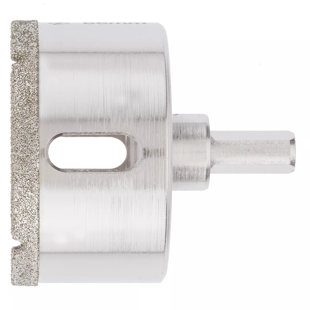 Wiertło diamentowe GRAPHITE (nr ref. 57H295) o średnicy 60.0 mm posiada ostrze, galwanicznie pokryte nasypem diamentowym. Pozwala to wiercić otwory w bardzo twardych materiałach ceramicznych i mineralnych (gres, granit, marmur).