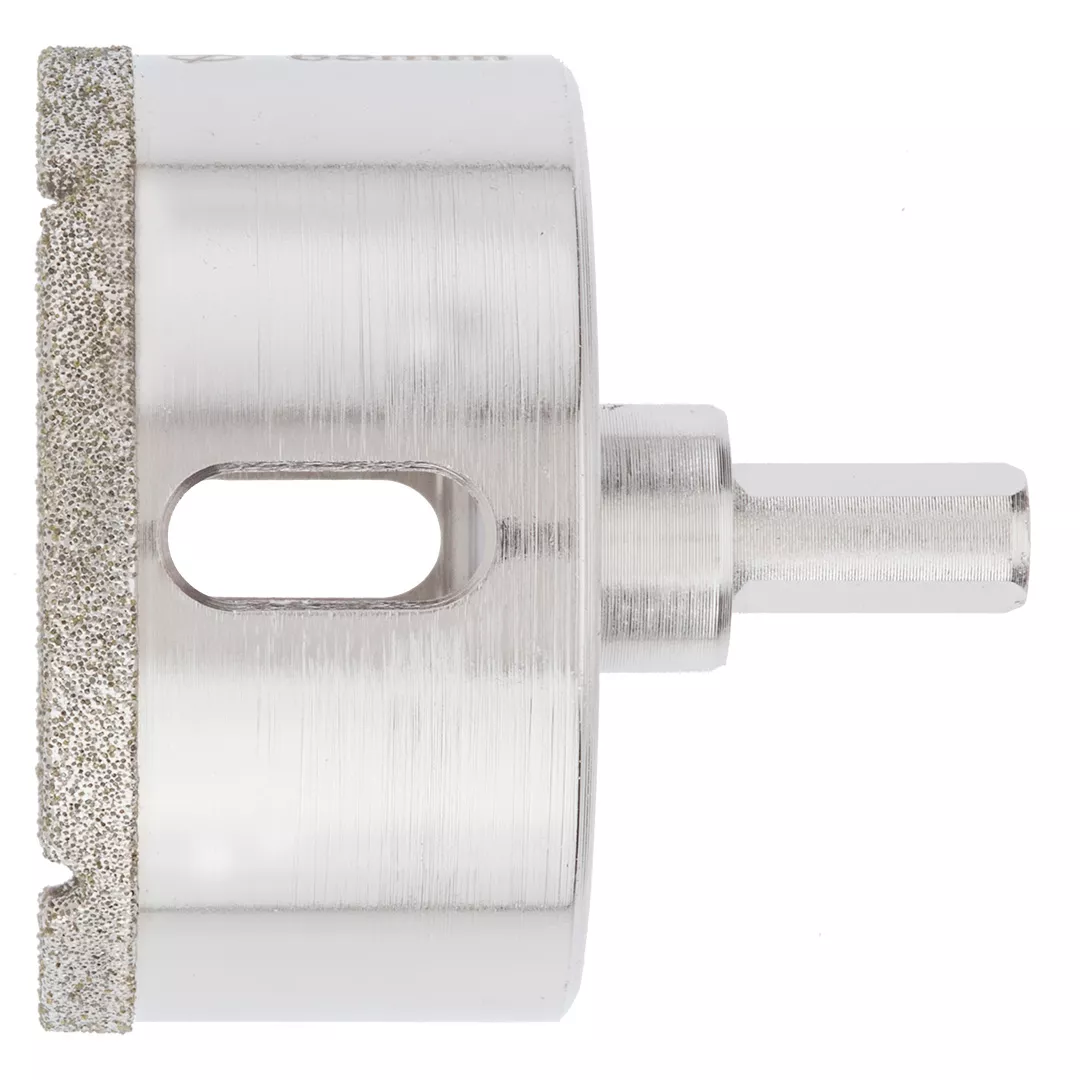 Wiertło diamentowe GRAPHITE (nr ref. 57H296) o średnicy 65.0 mm posiada ostrze, galwanicznie pokryte nasypem diamentowym. Pozwala to wiercić otwory w bardzo twardych materiałach ceramicznych i mineralnych (gres, granit, marmur).