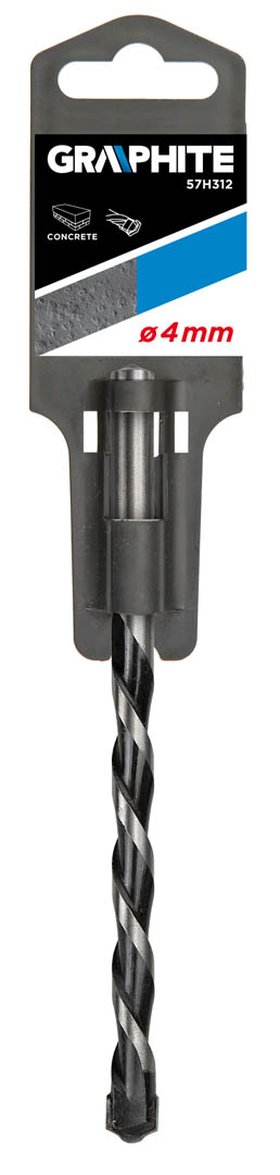 Wiertło do betonu GRAPHITE (nr ref. 57H312) o średnicy 4.0 mm posiada końcówkę widiową o kształcie motylkowym. Pozwala to na wiercenie otworów w betonie i materiałach ceramicznych bez obawy o uślizgiwanie się wiertła na boki w pierwszej fazie wiercenia.
