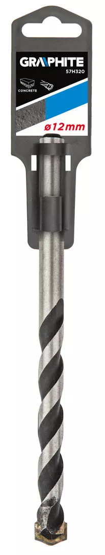 Wiertło do betonu GRAPHITE (nr ref. 57H320) o średnicy 12.0 mm posiada końcówkę widiową o kształcie motylkowym. Pozwala to na wiercenie otworów w betonie i materiałach ceramicznych bez obawy o uślizgiwanie się wiertła na boki w pierwszej fazie wiercenia.