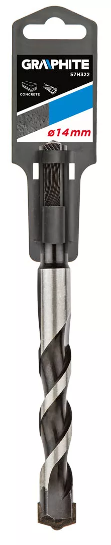 Wiertło do betonu GRAPHITE (nr ref. 57H322) o średnicy 14.0 mm posiada końcówkę widiową o kształcie motylkowym. Pozwala to na wiercenie otworów w betonie i materiałach ceramicznych bez obawy o uślizgiwanie się wiertła na boki w pierwszej fazie wiercenia.