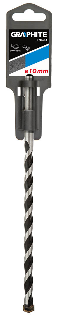 Wiertło do betonu GRAPHITE (nr ref. 57H334) o średnicy 10.0 mm posiada końcówkę widiową o kształcie motylkowym. Pozwala to na wiercenie otworów w betonie i materiałach ceramicznych bez obawy o uślizgiwanie się wiertła na boki w pierwszej fazie wiercenia.