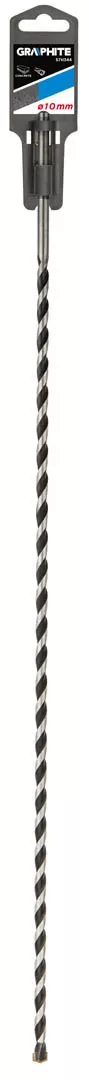Wiertło do betonu GRAPHITE (nr ref. 57H344) o średnicy 10.0 mm posiada końcówkę widiową o kształcie motylkowym. Pozwala to na wiercenie otworów w betonie i materiałach ceramicznych bez obawy o uślizgiwanie się wiertła na boki w pierwszej fazie wiercenia.